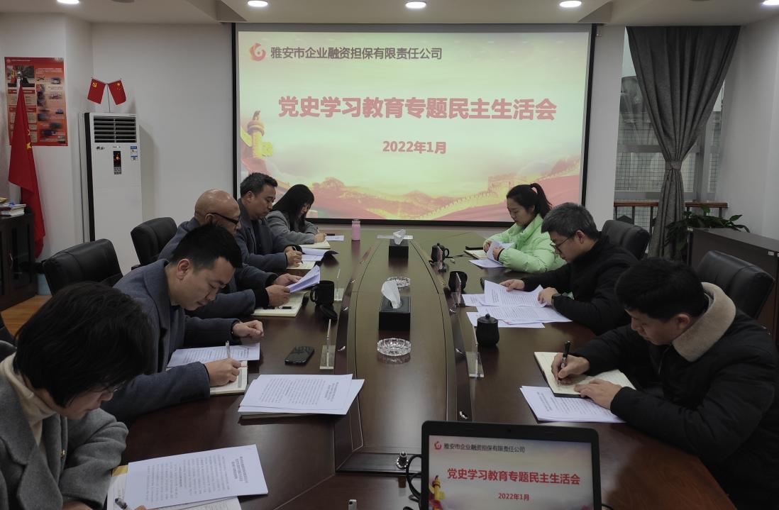 1月20日,市擔保公司黨支部召開黨史學習教育專題民主生活會,公司領導班子圍繞黨史學習教育專題民主生活會主題,結合工作實際,嚴肅認真開展批評與自我批評。市財政局黨組成員、副局長康藜到會指導,公司黨支部書記、董事長尹福健主持會議并代表領導班子作表態(tài)發(fā)言。